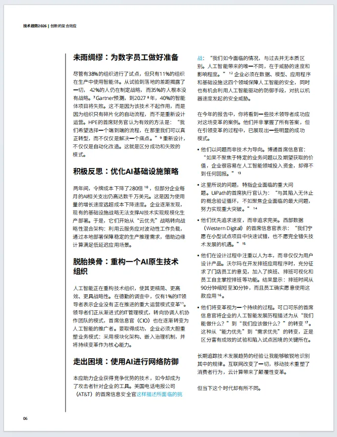 仅11%的企业成功将智能体投入实际生产应用,多数企业因仅自动化现有流程、遗留系统整合难等问题未能实现业务变革。领先企业将智能体视为硅基劳动力,重构端到端业务流程,通过多智能体协议实现协同调度,并建立涵盖入职、绩效、成本的数字员工管理框架。