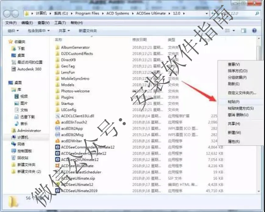 9、回到电脑桌面,鼠标点ACD2019快捷方式,打开文件所在位置,在空白处右击粘贴。