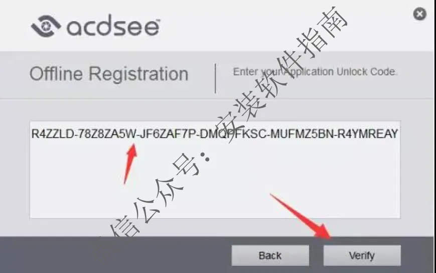 14、将激活码:TS5DQ-ZEVD8HGQ-EK6425LL-X5JST5KV-3TR4ZZLD-78Z8ZA5W-JF6ZAF7P-DMQPFKSC-MUFMZ5BN-R4YMREAY复制粘贴进框中,点Verify进行下一步。