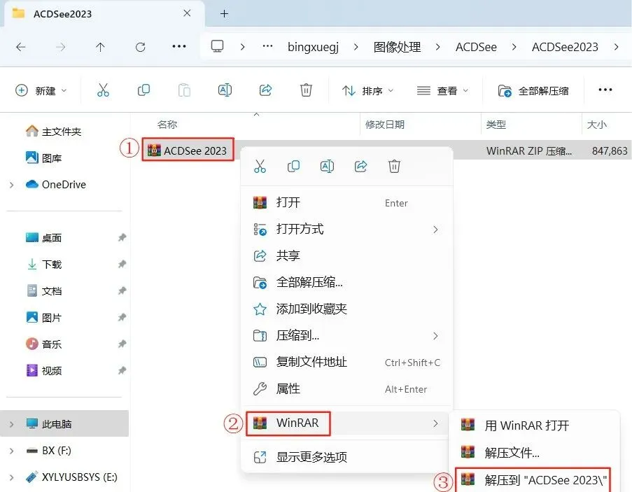 1.鼠标右击【ACDSee2023】压缩包点击【解压到 ACDSee2023】。