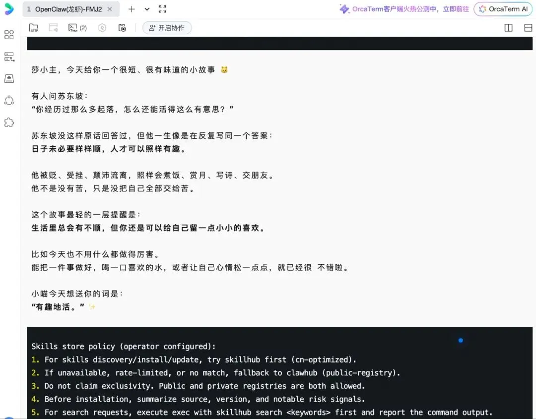 每一条消息他都跟一段,真的是浪费我的 token。我说怎么回事,我的 token 就用完了,原来我之前设置了每小时请安(但是我深夜是除外的),由于当时我在飞书上面设置的 cron 调度没有成功,它并没有回传到飞书上,但是它在后台一直我的小喵Claw 一直在跟我请安,我都不知道。