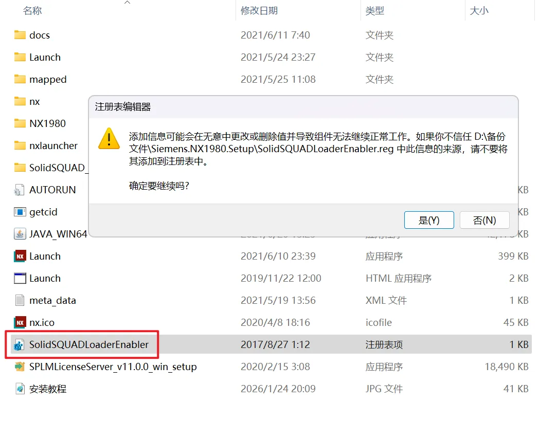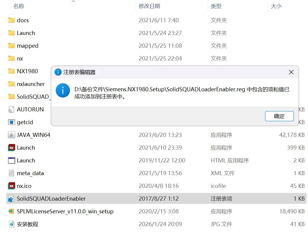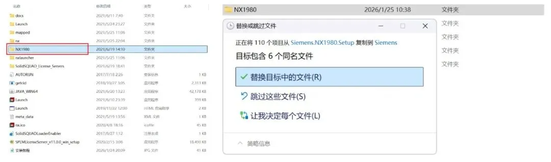 鼠标点击NX1980上一个文件夹,粘贴破解文件替换即可