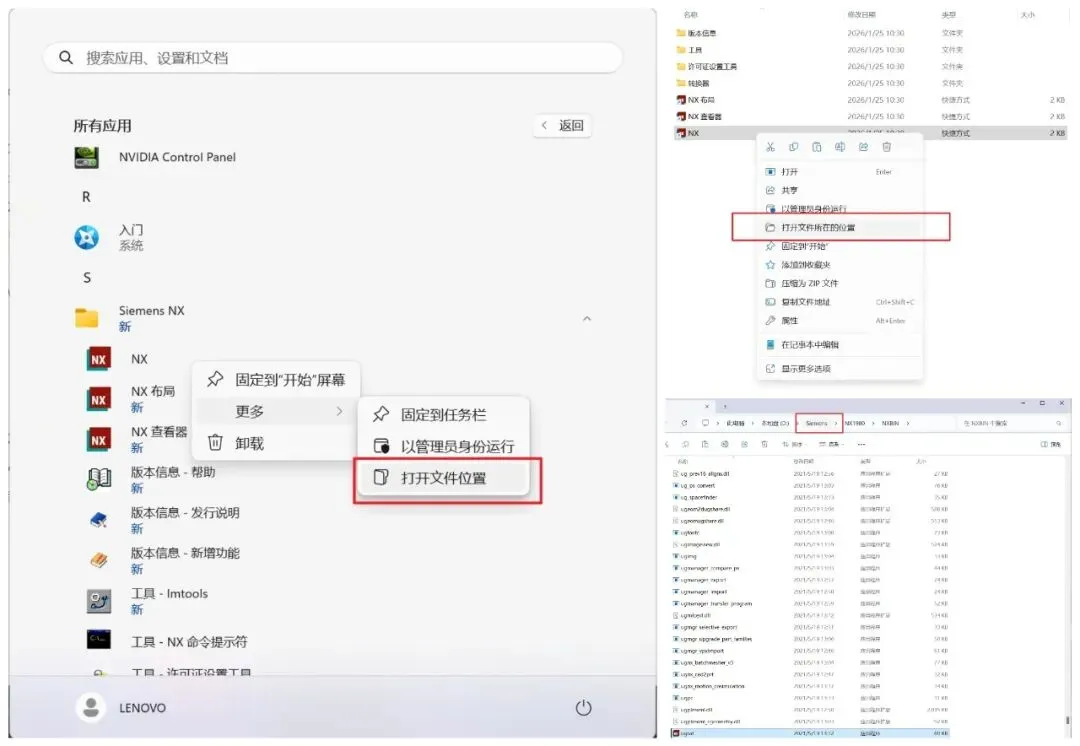 开始菜单里鼠标右键NX—更多—打开文件位置
