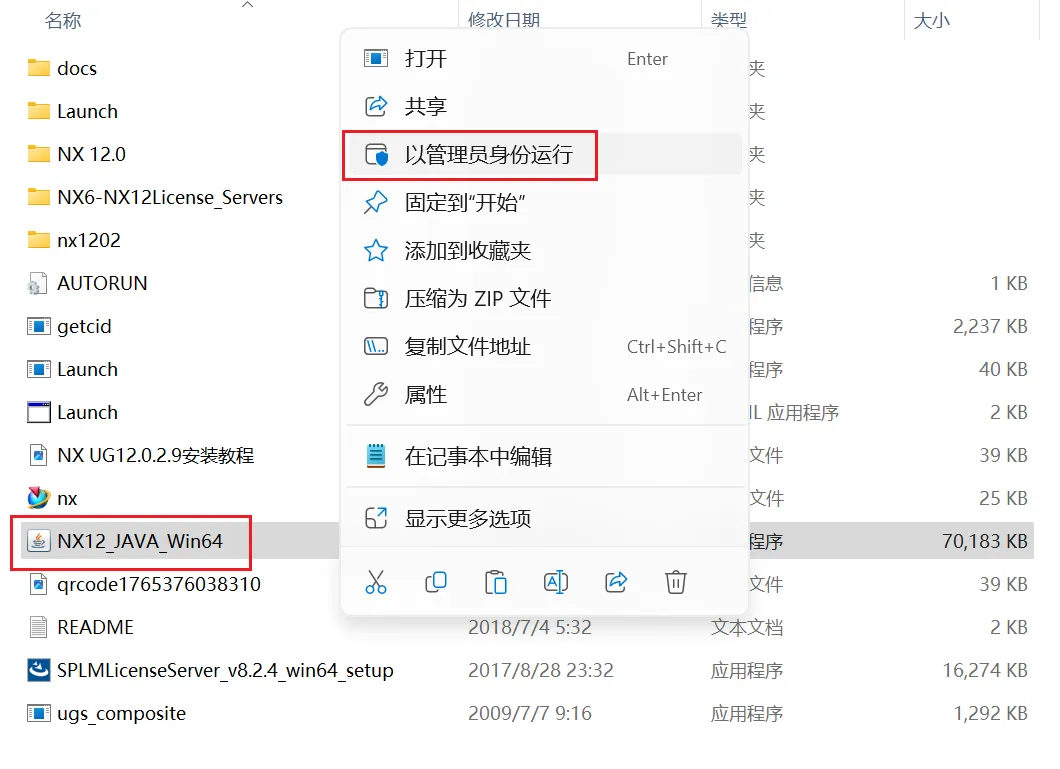 3.鼠标右键NX安装程序以管理员身份运行