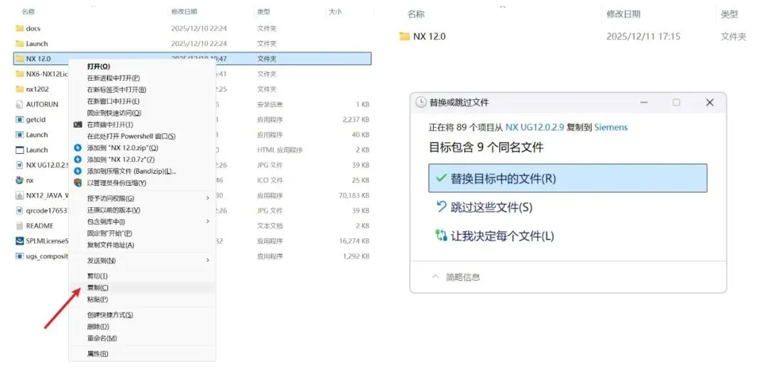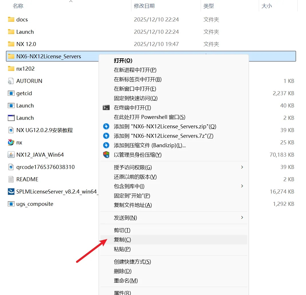 鼠标点击NX12上一个文件夹,粘贴破解文件