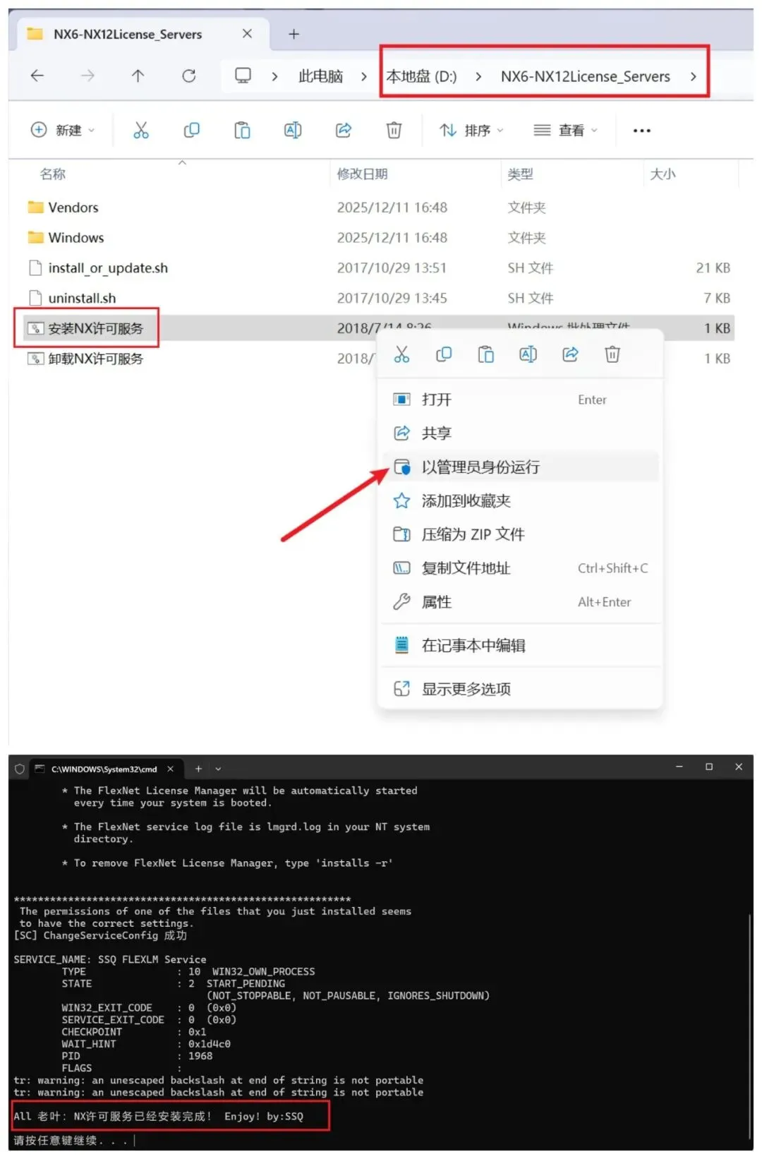 2.1粘贴到盘符根目录下,鼠标右键NX许可证服务器以管理员身份运行