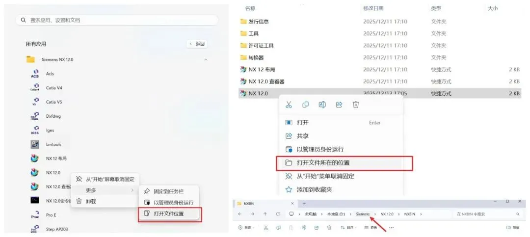 开始菜单里鼠标右键NX12—更多—打开文件位置