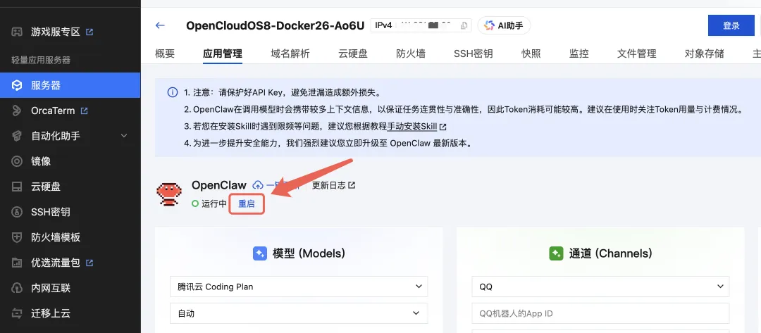 如果App ID和App Secret都已经配置无误,回到腾讯云尝试重启机器。