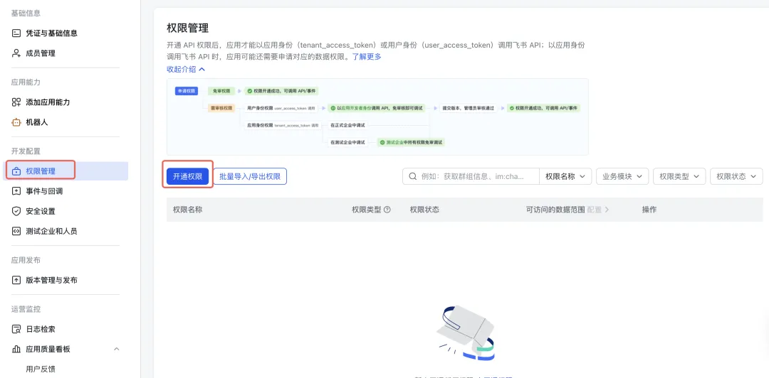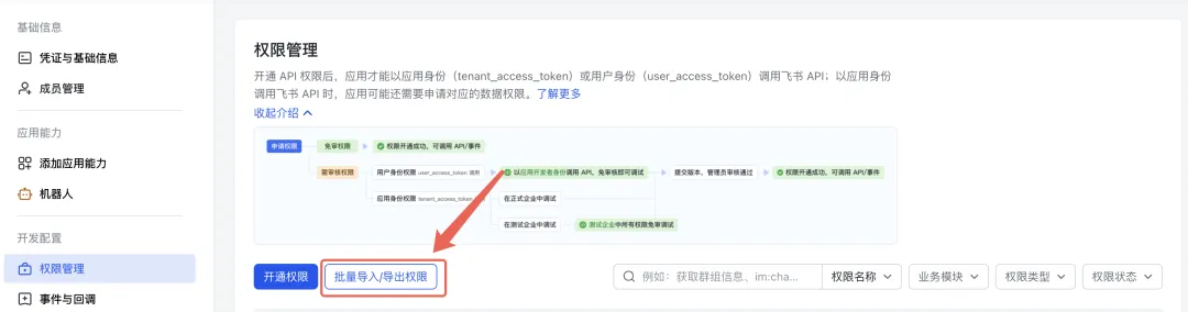 找到权限管理,进入该页面后,点击“批量导入/导出权限”