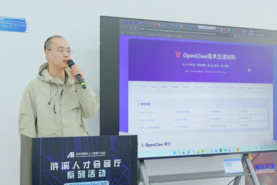 今天(3月19日),OpenClaw技术宣讲与部署体验活动在浒墅关浒溪人才会客厅举办,来自智能制造、科技研发、数字服务等重点领域的近百位企业技术负责人、科创平台负责人、AI开发者及业务骨干现场参与。活动通过“技术宣讲+实操部署+云体验”三维模式,助力参会者掌握从“对话式AI”向“行动式AI”的跨越能力。