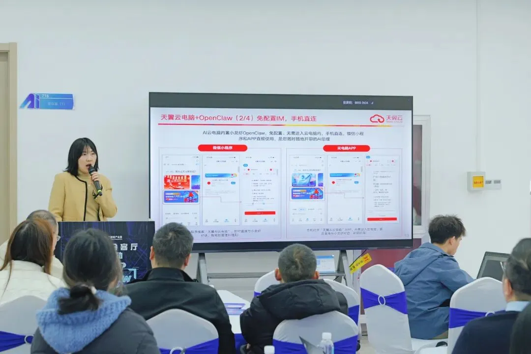 针对企业关注的硬件投入与数据安全问题,活动设置电信天翼AI云电脑专项体验。该方案依托云端算力,无需本地复杂配置即可流畅运行OpenClaw,实现“开箱即用”,同时提供数据安全防护。