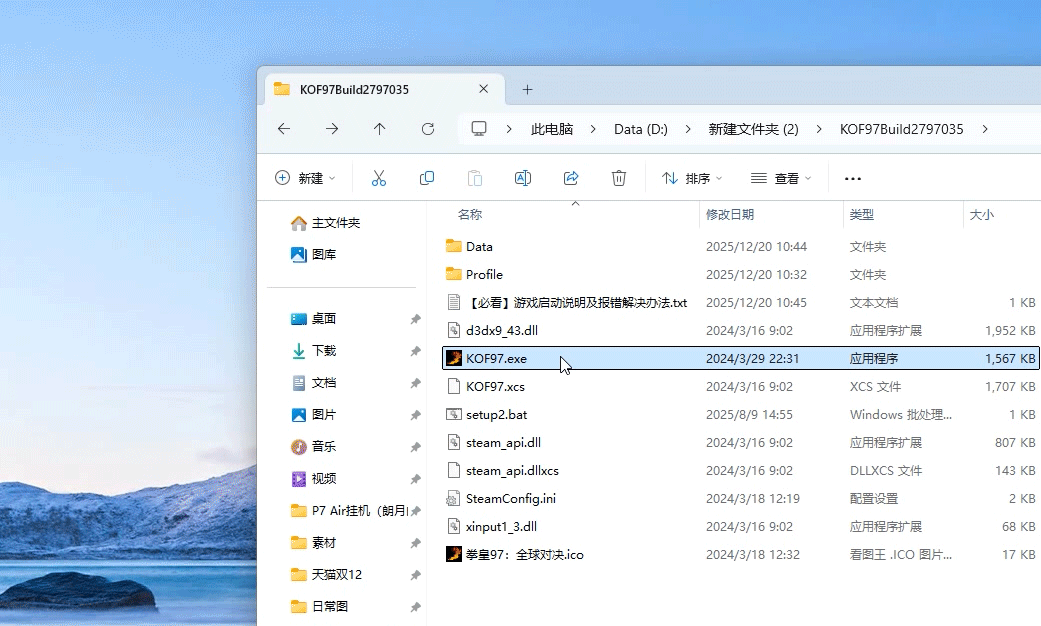 2.双击打开【KOF97.exe】启动程序 如图