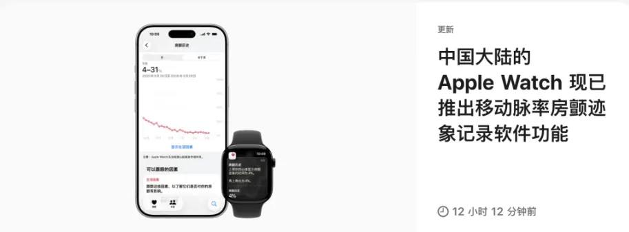 这会儿iOS的安全补丁在推,国行Apple Watch那边也有一条功能更新上线了,时间是3月17日,房颤记录功能正式可用,面向已经确诊房颤的用户开放。