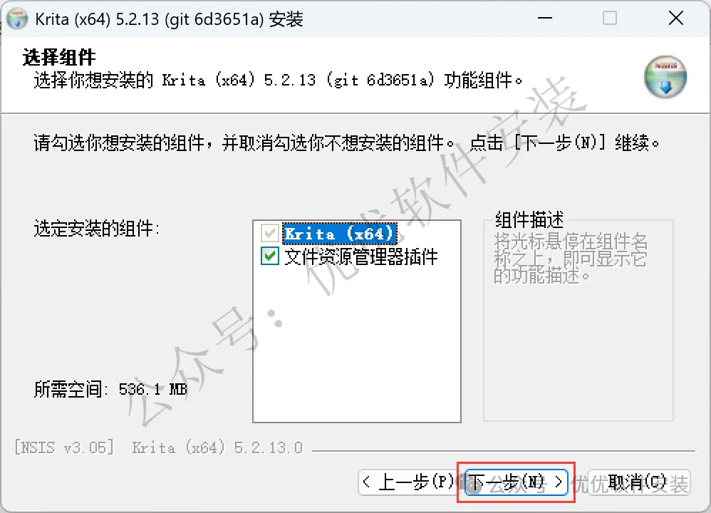 1、下载Krita 5.2.13软件安装包到电脑上,右键选择【解压到Krita 5.2.13\】