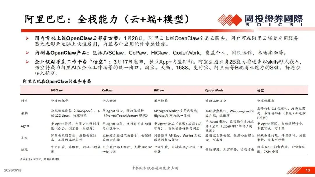 云服务商在这一浪潮中扮演了基建底座的角色。阿里、腾讯、百度和字节在第一时间就上线了云端部署解决方案,极大降低了普通用户使用智能体的门槛。阿里通过阿里云上线了全套云服务,用户可以在应用服务器或云电脑上快速启用内置镜像。