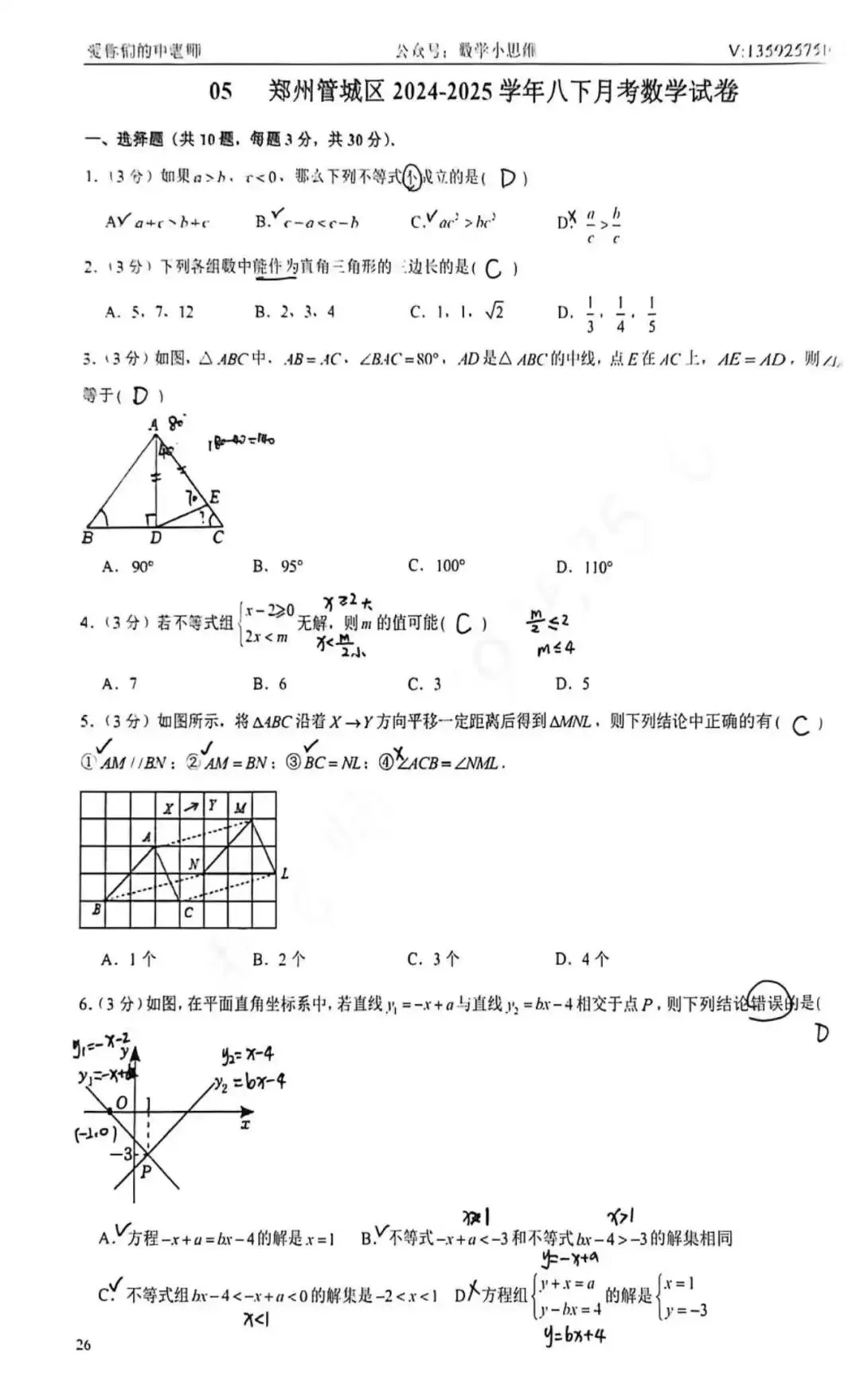 8八下真题集07套郑州96中月考试题讲解(2026版)