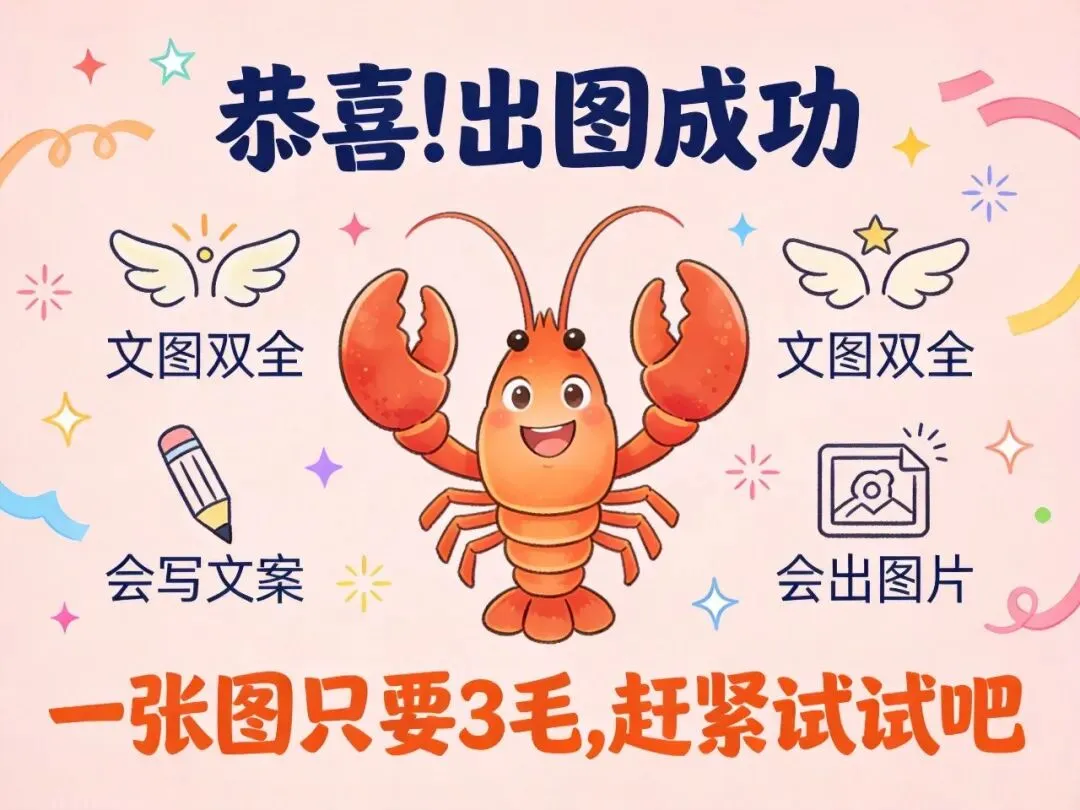 现在,你的OpenClaw龙虾不再是只会写文案的"文人",而是文图双全的"全能选手"了。