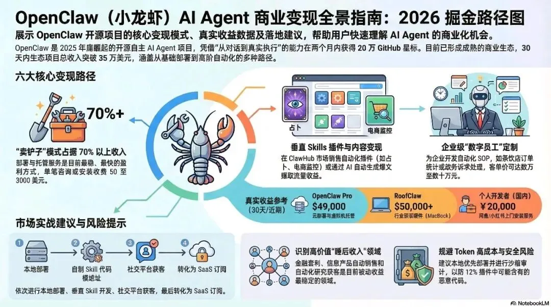 - 专业团队: 积累 3-5 个垂直行业案例(如电商、金融),转入 SaaS 订阅或 ClawHub 插件销售模式。