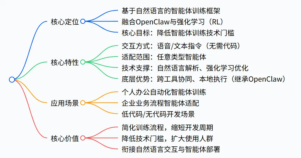 - 3.底层基础:继承 OpenClaw 原生的 “本地优先、跨工具协同、模块化架构” 特性,新增强化学习模块用于智能体行为优化。