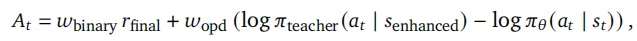 在增强提示senhanced下查询策略模型,强制输入原始响应at,计算每个响应令牌的对数概率。在线策略蒸馏中的令牌级优势函数为: