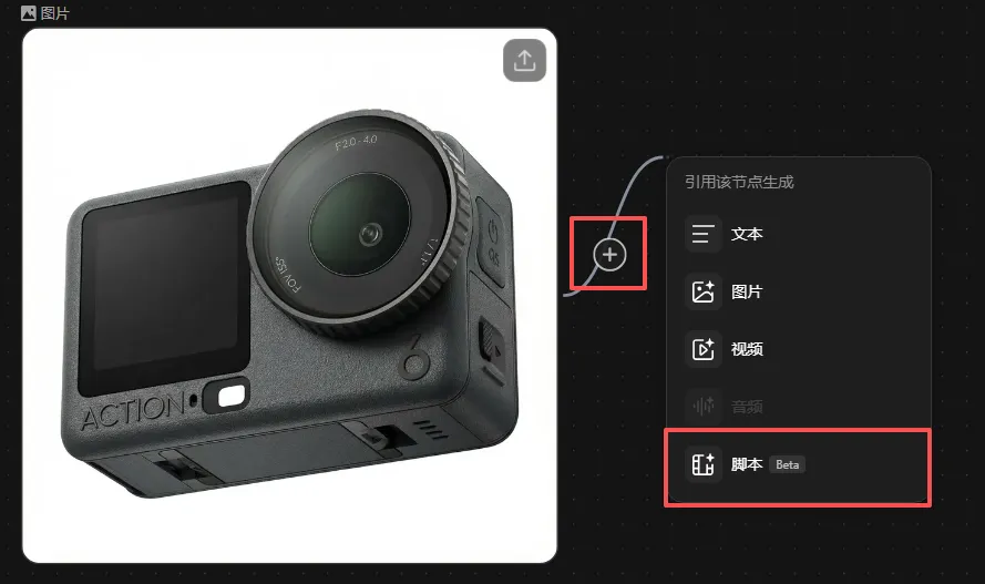图片右侧有一个 + 的图标,点击后可以拉出如下节点,选择脚本/