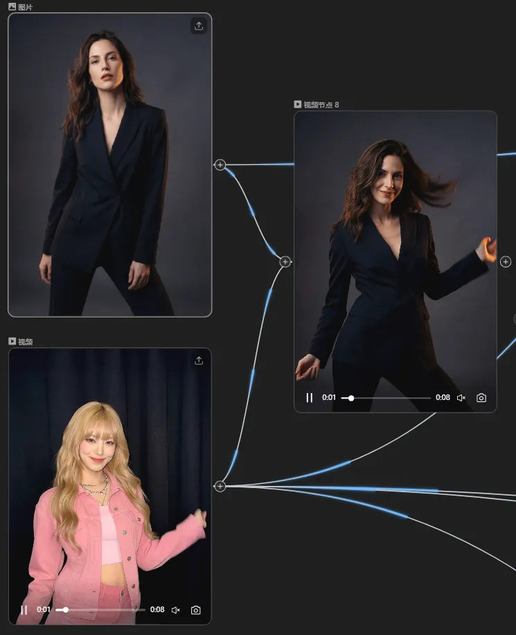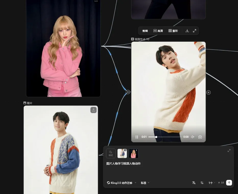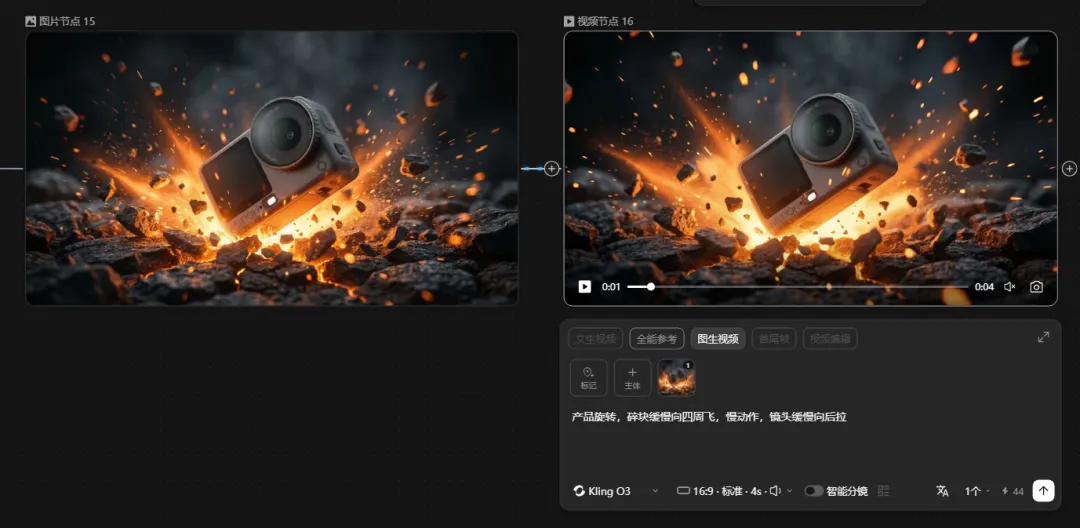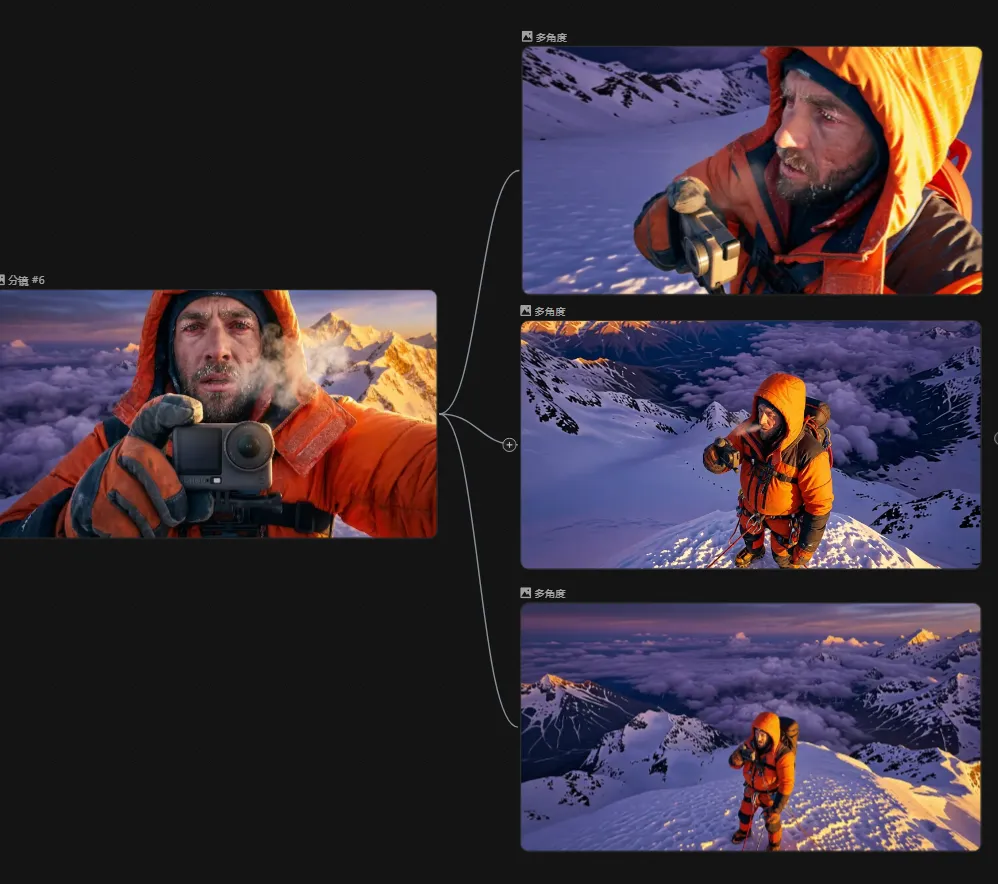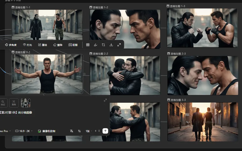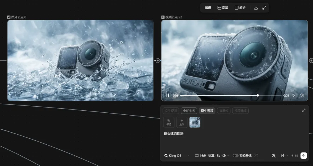 这里就像拍电影那样,精准控制你的角色,画面,多角度,多机位灯光控制,相机控制,多分镜,多模态参考生成最终达到视频精准编辑。