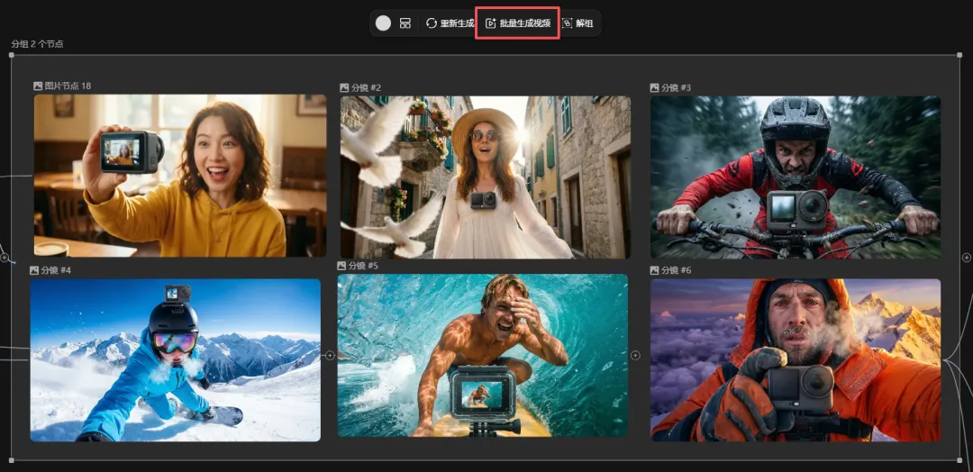 图片都完成了,然后就是生成视频,骚气的来了,可以直接点击批量生成视频。