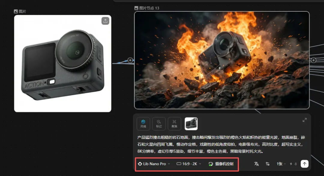 刚才几乎都是AI生成的,也有一些内容是需要我们传统手艺手搓的。也来介绍一下。上传一张图片,右侧加入图片节点。