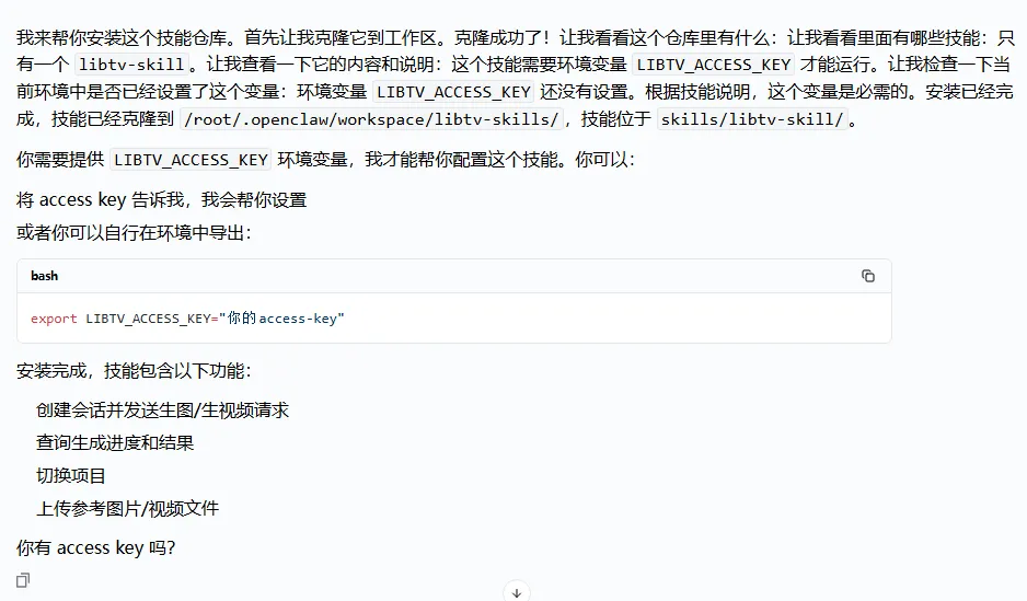 直接安装libtv-skills,直接把地址发给他,告诉他安装就可以。
