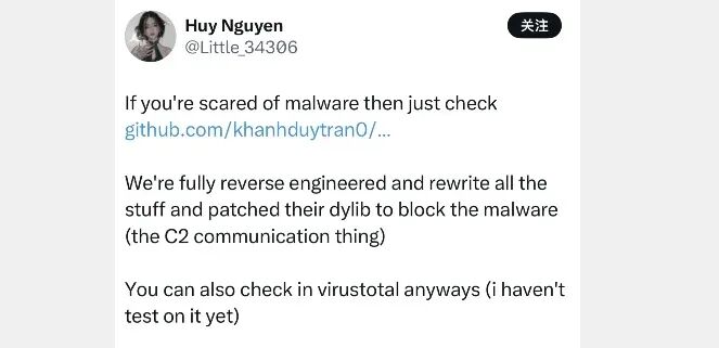 关于 DarkSword 漏洞利用进展,目前只有安全研究人员解密,其他开发者还未解密,只能等解密后再利用,解密后还需要拦截恶意接口,预防出现信息被盗取等风险,针对 Coruna 漏洞就是被解密拦截。