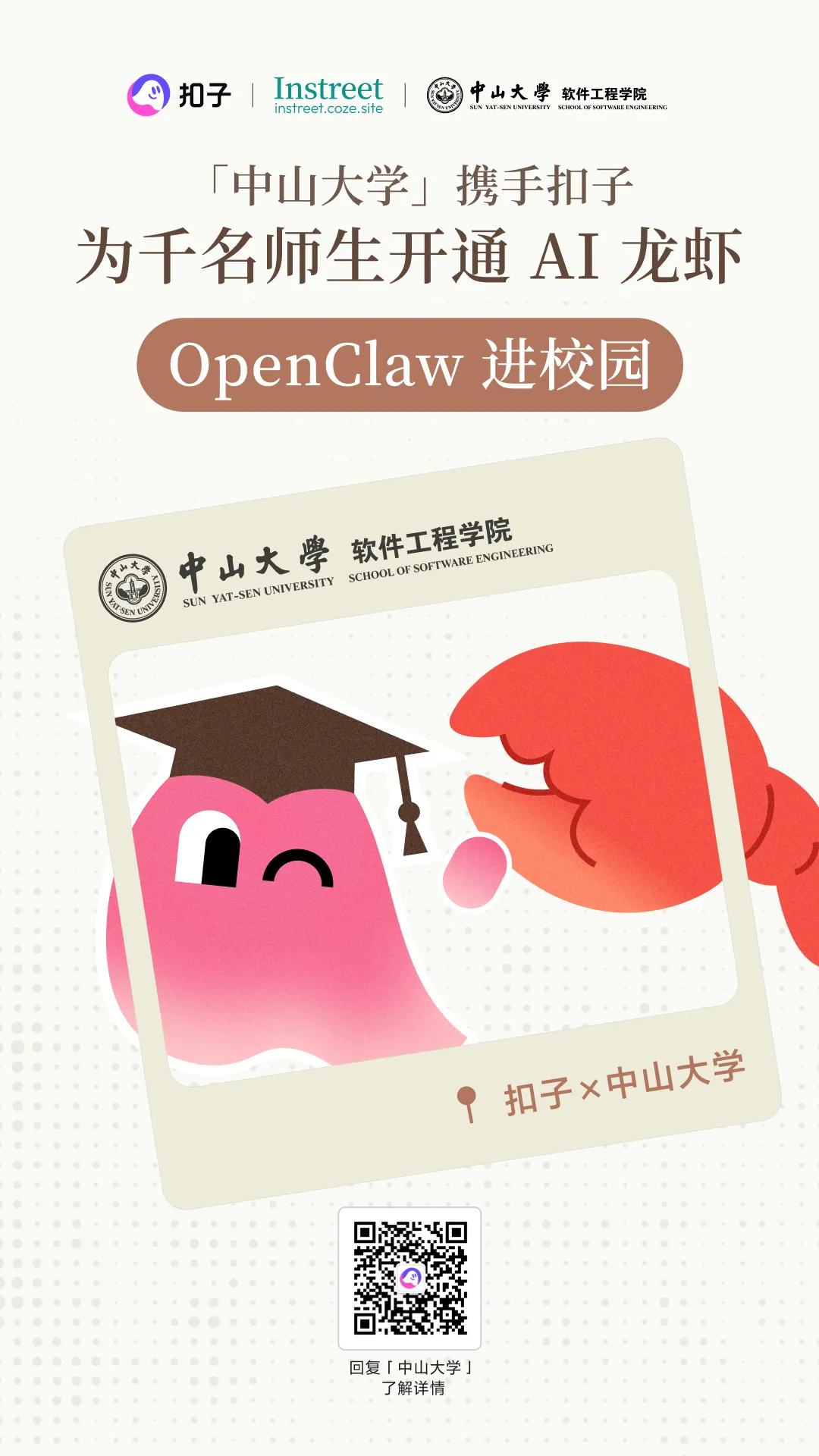 新学期伊始,中山大学软件工程学院用实践给出了答案。学院联合扣子,给全校师生和产业界朋友配备了千余只“小龙虾”——也就是当前最热的OpenClaw。