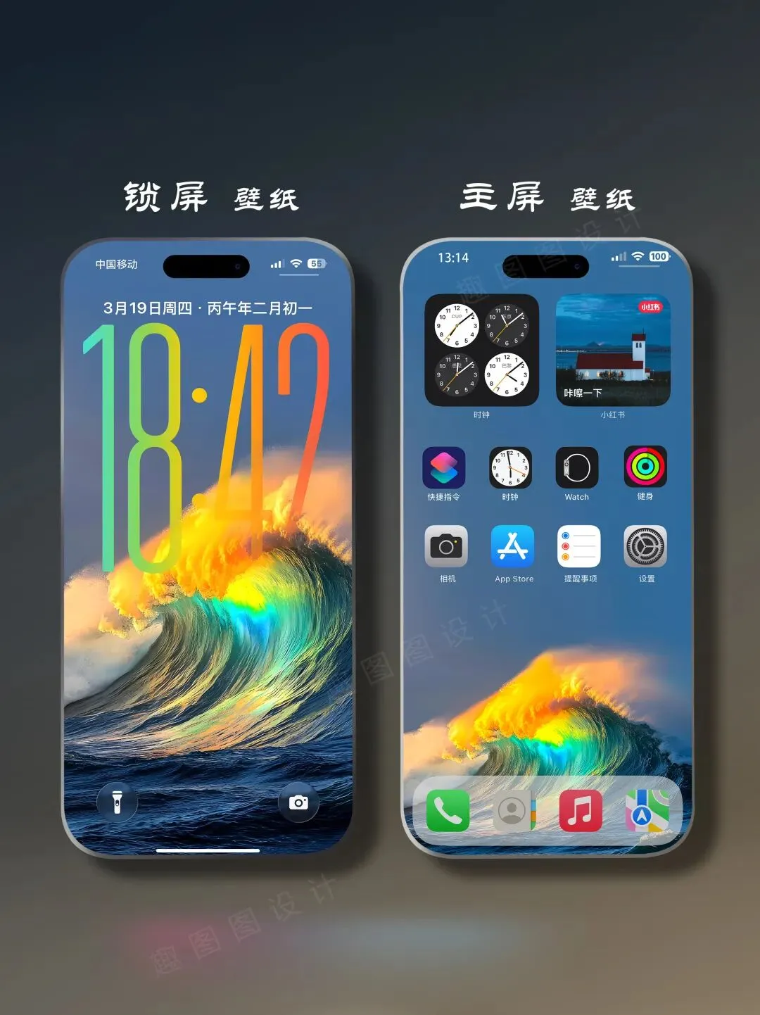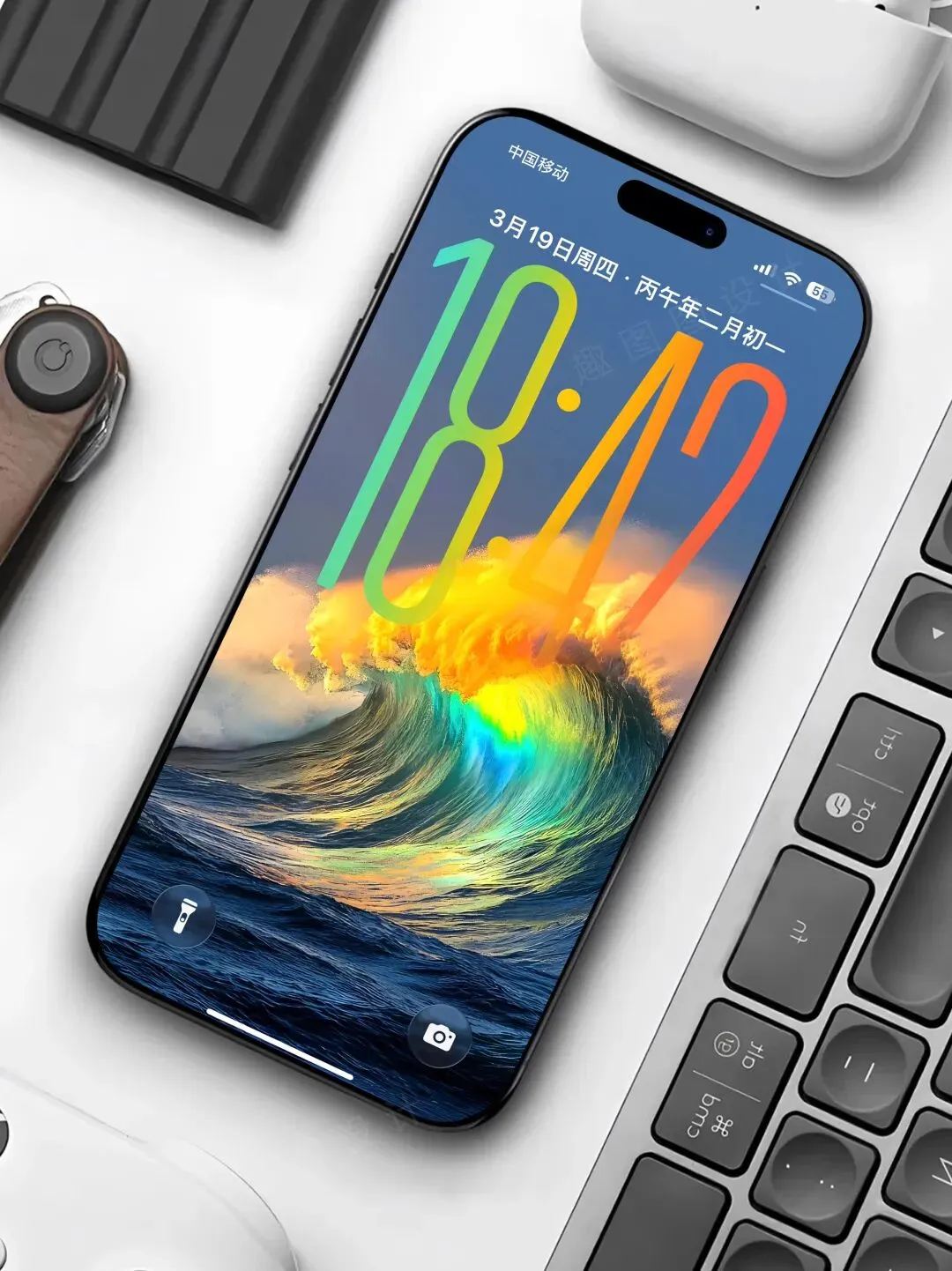 水即是财 海浪彩虹 好运当头 ios26手机壁纸