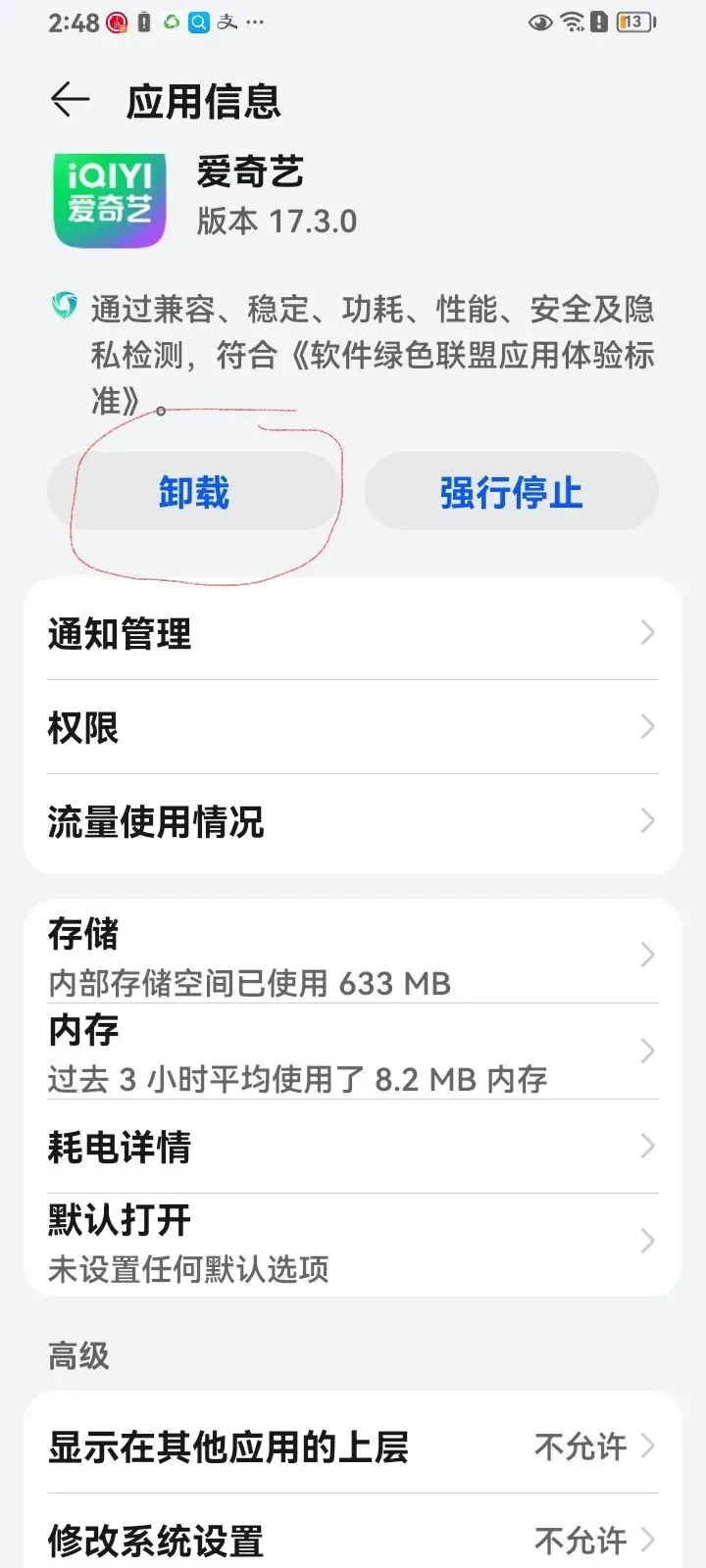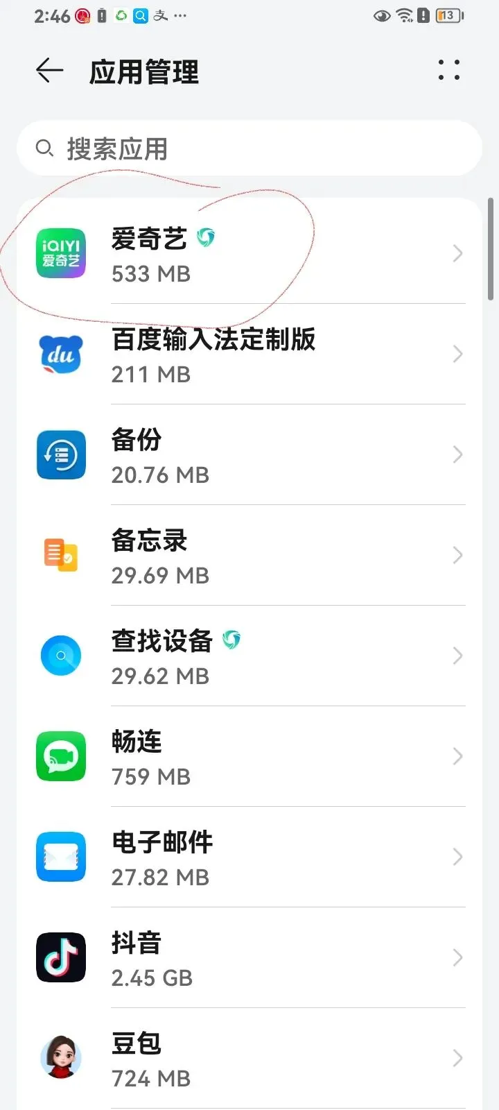比如上边我圈的这个软件,我们不想用了,我们就点开它,⚠️⚠️注意了!!打开之后,一定不要着急点这个卸载!!先不要点!向上划。