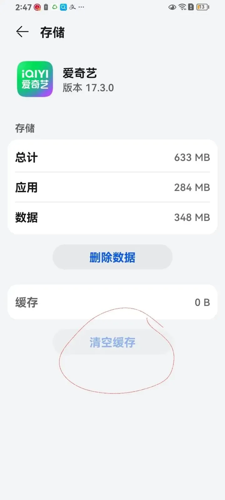 来到了这个页面,你会看到这里有一个清空缓存,还有一个删除数据。有两项选择!