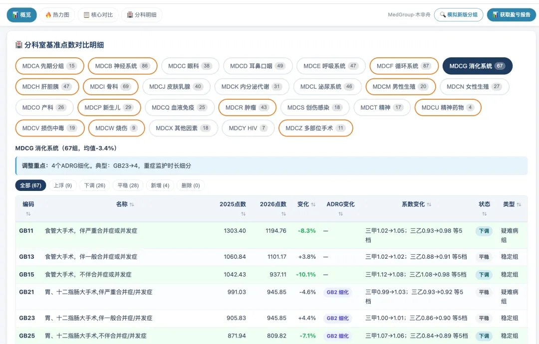 以上数据全部来自 MedGroup 团队制作的交互式DRG对比报告(单文件HTML,离线可用)。报告包含: