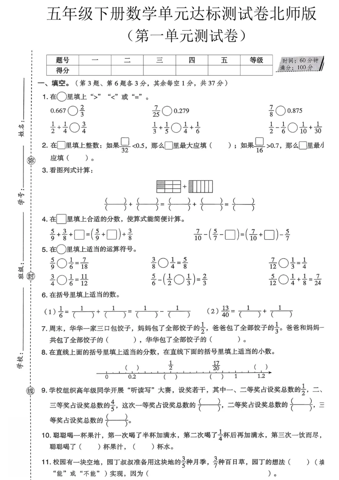 五年级(下)数学 第一单元达标测试卷《北师版》