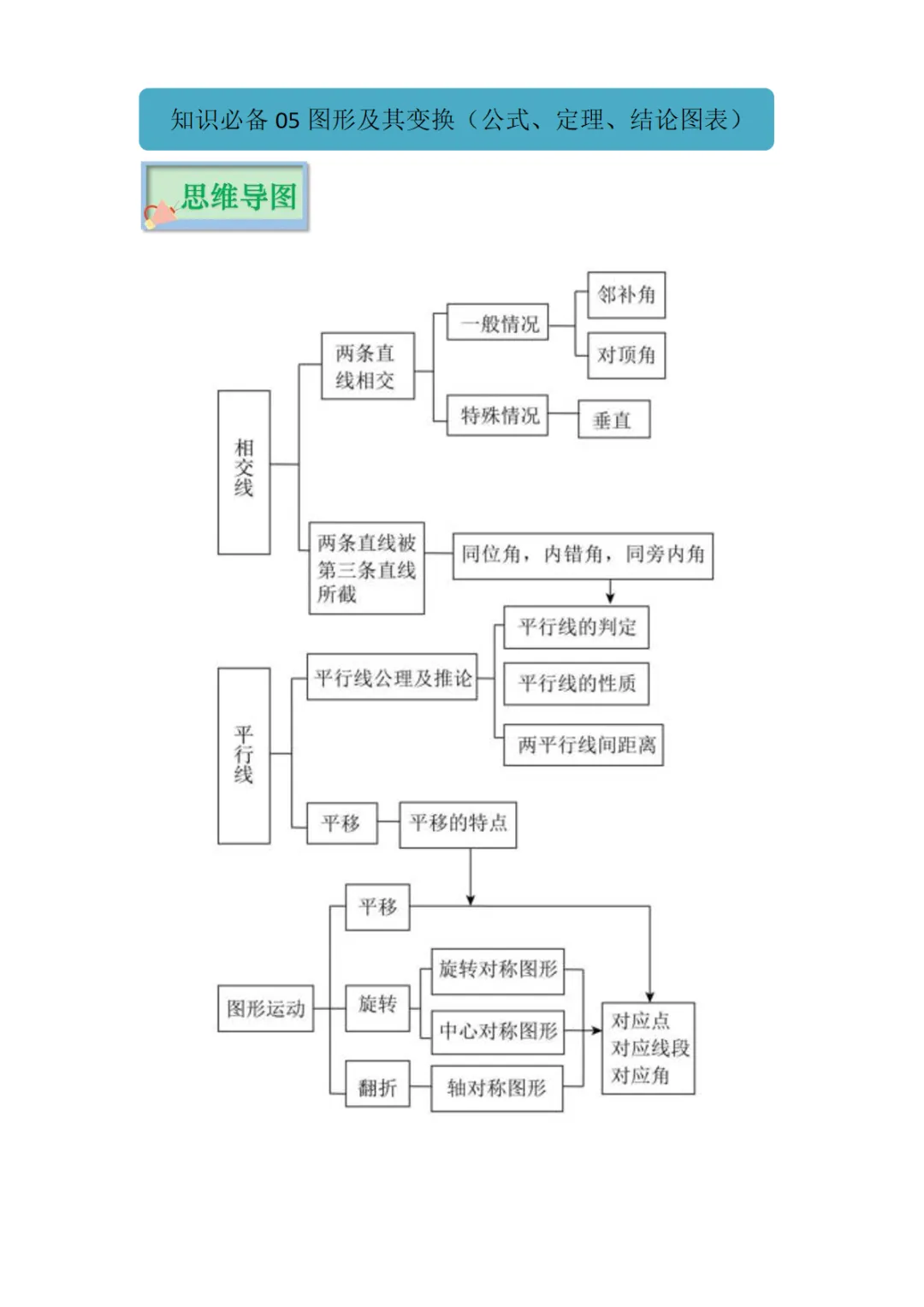 九年级(下)数学 中考知识必备05 图形及其变换(公式、定理、结论图表)