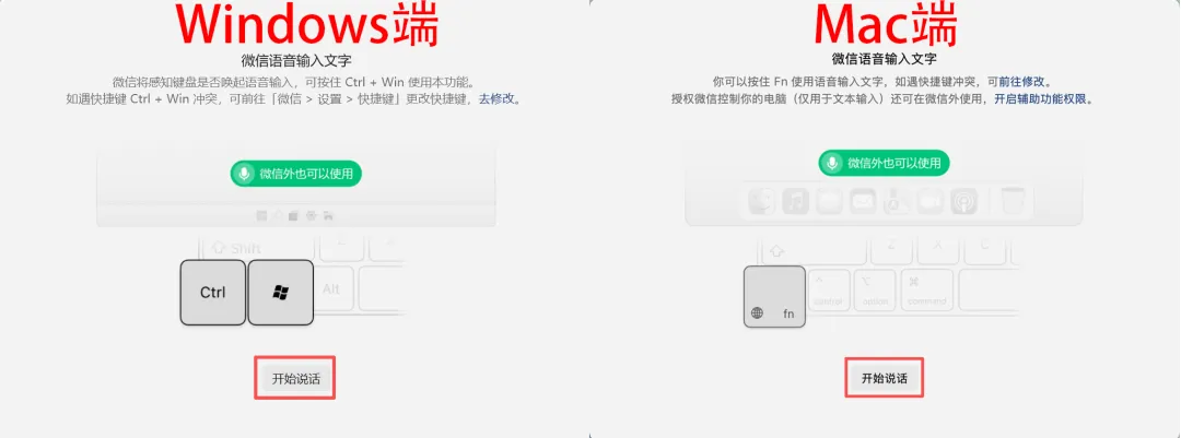 Windows端按住CTRL+Win或者点击聊天框里的小话筒、Mac端按键盘的fn键,即可使用【语音转文字】输入。