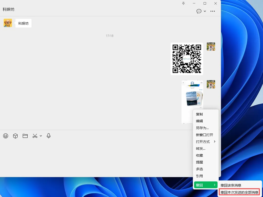 这个功能手机版好像已经有了好长时间了,大家伙在遇到一次性转发多条信息、图片、视频,发送错误时放在之前还要一条一条撤回,特别影响效率,并且撤回的慢了还特别尴尬。