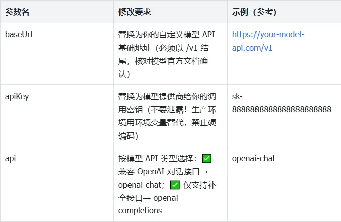 步骤 2:核心配置文件修改(以最常用的「第三方 API 模型」为例)