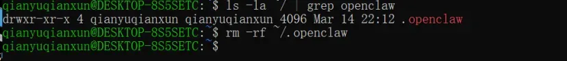 ls -la ~/ | grep openclaw查看所有相关目录。