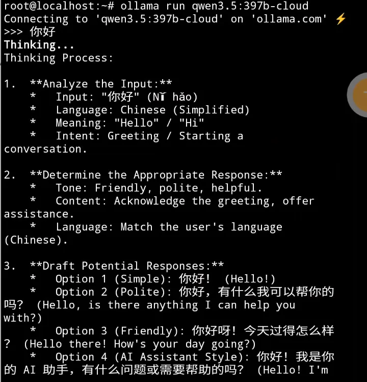 # 再随便启动一个云端模型ollama run minimax-m2.7:cloud