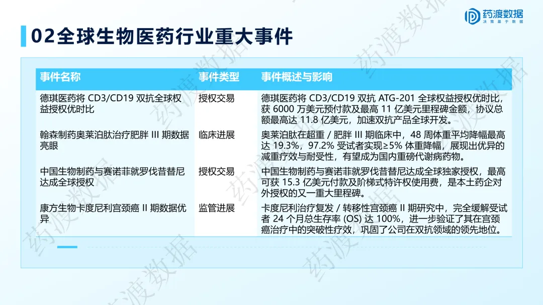 BD交易(对外授权)、License-out、GLP-1、双特异性抗体(双抗)、小核酸药物、AI for Science、中国生物制药德琪医药、翰森制药