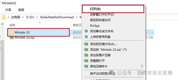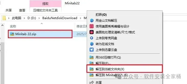 1.打开下载的Minitab 22软件安装包,鼠标右击压缩包选择【解压到当前文件夹】。