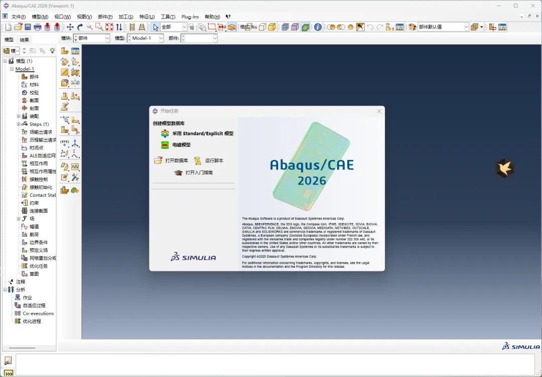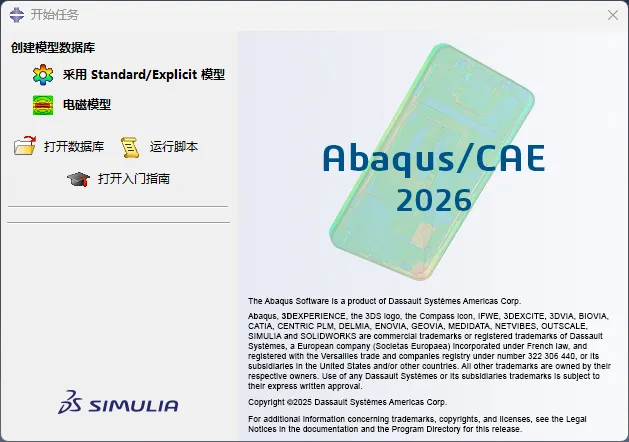 达索系统SIMULIA于2026年2月正式发布了Abaqus 2026版本(FD01),该版本在接触计算性能上实现了重大突破,求解效率最高可提升50%,并引入了热-电化学耦合分析、更灵活的全局绑定等一系列新功能,系统要求为Windows 10及以上64位操作系统。