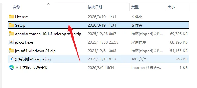 15.打开开始安装包解压后的【Abaqus2026】文件夹,双击打开【Setup】文件夹。