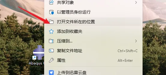 74.鼠标右击桌面【Abaqus】图标选择【打开文件所在的位置】。