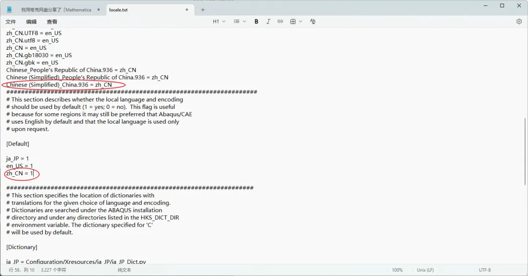 79.在第二行“########……”前加上【Chinese (Simplified)_China.936 = zh_CN】,在第三行“########……”前,将【zh_CN = 0】改为【zh_CN = 1】。
