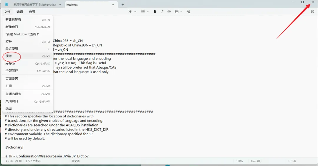 80.修改完成后点击【❎】选择【保存】。(若保存不了,请保存在桌面,再替换原locale.txt文件)