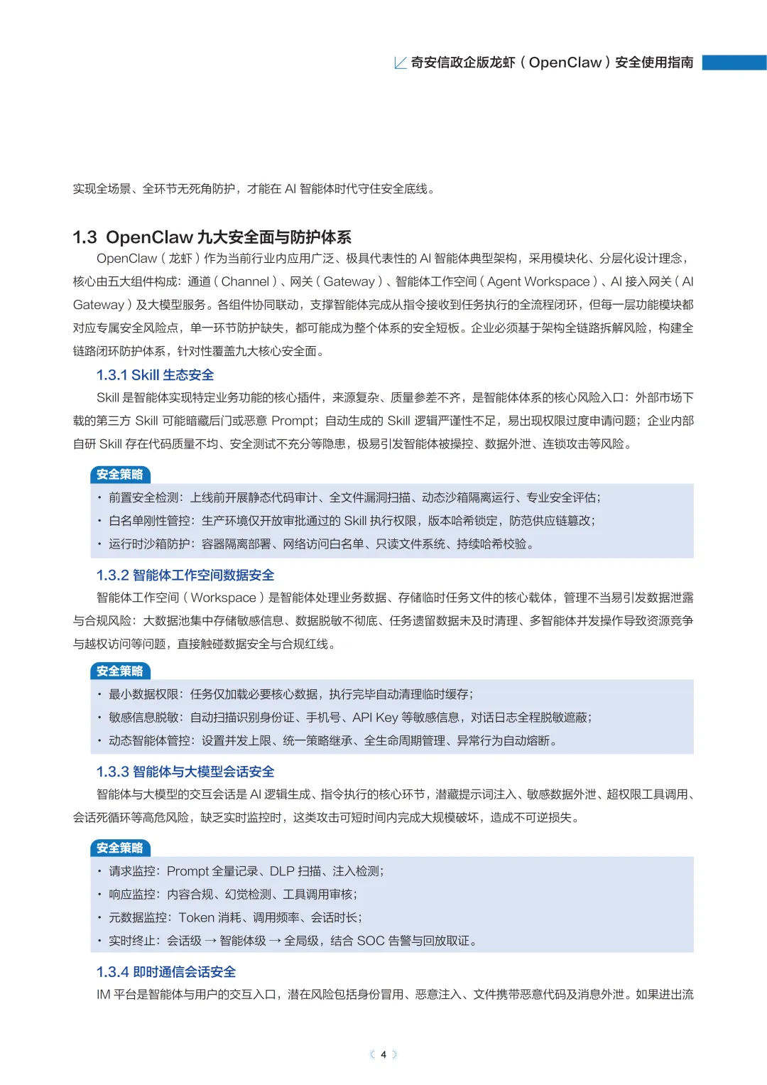 本指南基于OpenClaw的技术架构与企业部署实践,总结了智能体平台的关键安全风险,并提出面向企业安全管理员和IT决策者的安全使用指南,为企业实现OpenClaw智能体的“看得清、管得住、用得好”提供参考,真正释放Al智能体带来的生产力红利。